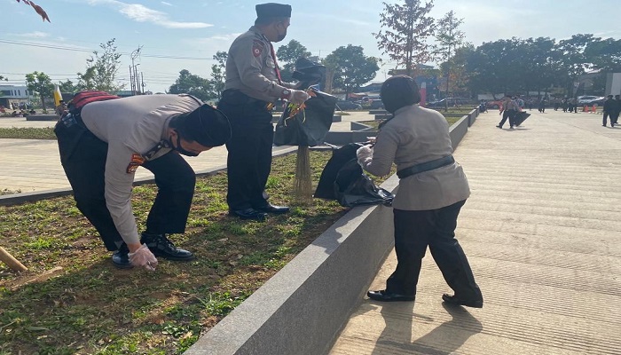 145 Anggota Pam Obvit Polda Jabar Gelar Jumat Bersih dan Curhat di Masjid Al Jabbar
