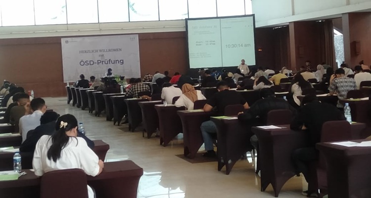 Antusiasme peserta ujian terlihat tinggi. Ujian sertifikasi bahasa Jerman tersebut diawasi langsung oleh tim penguji dari Jerman dengan standard sangat ketat.